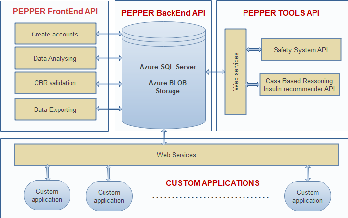 The PWI application is connected to other APIs developed into Pepper project context (Safety System API, Case Base Reasoning API) that helps the diabetic patient improve the treatment disease.